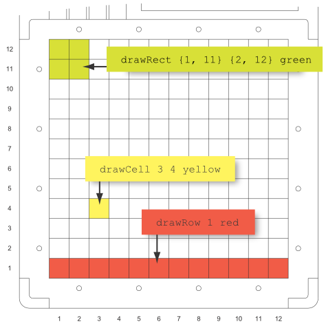 Write a program that shows a nice drawing on the TagTiles board. Seperate multiple commands with a semicolon (